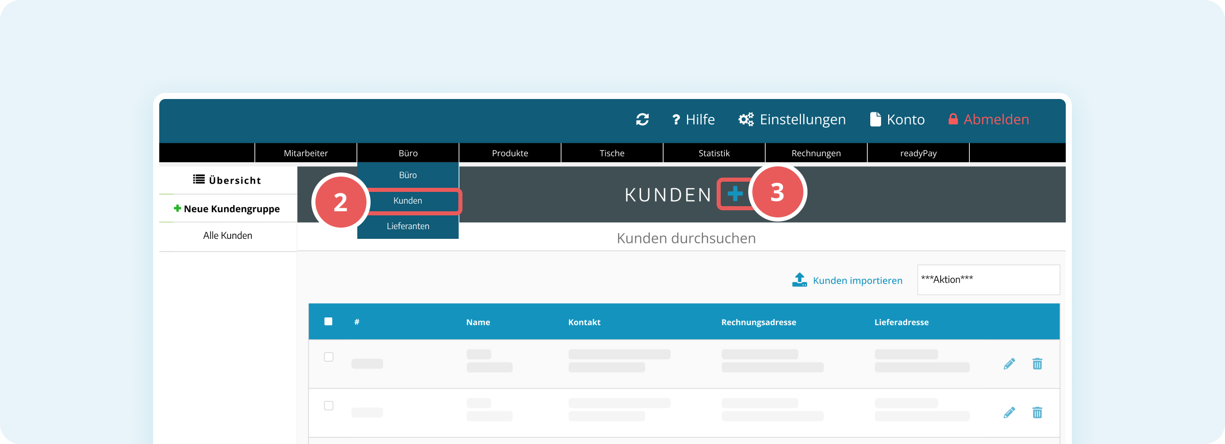 Hinweis: Kunden können auch direkt im POS (Kassensystem) angelegt werden. Eine separate Anleitung dazu findest Du hier.
