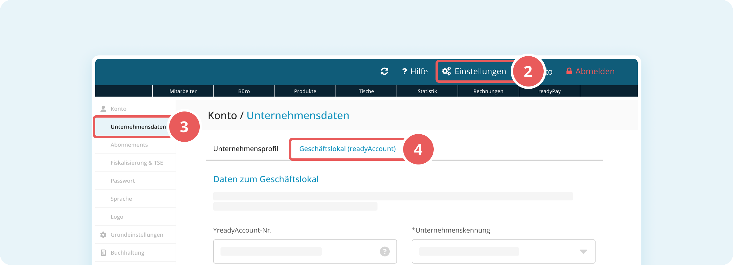 - Wechsle zum Tab Geschäftslokal (readyAccount).