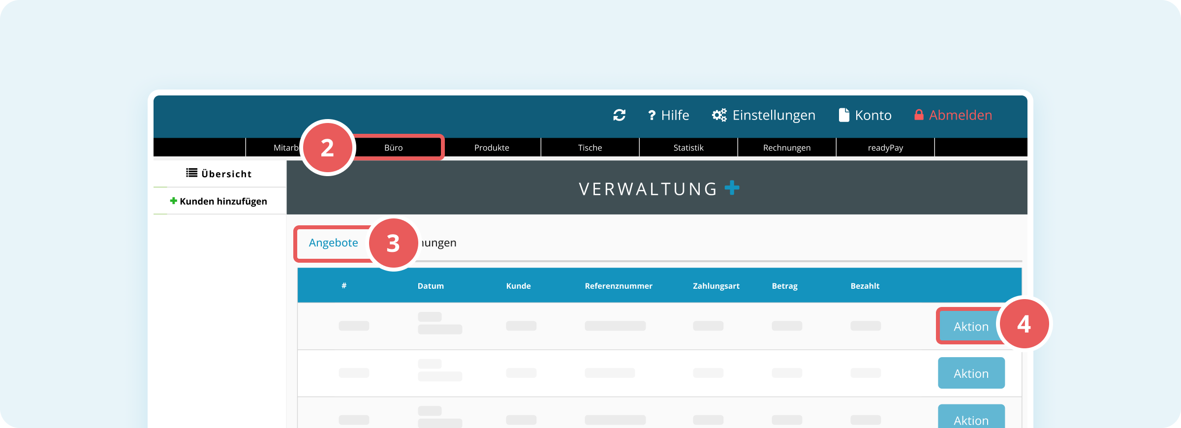 - Klicke oben in der Hauptnavigation auf den Tab Büro.