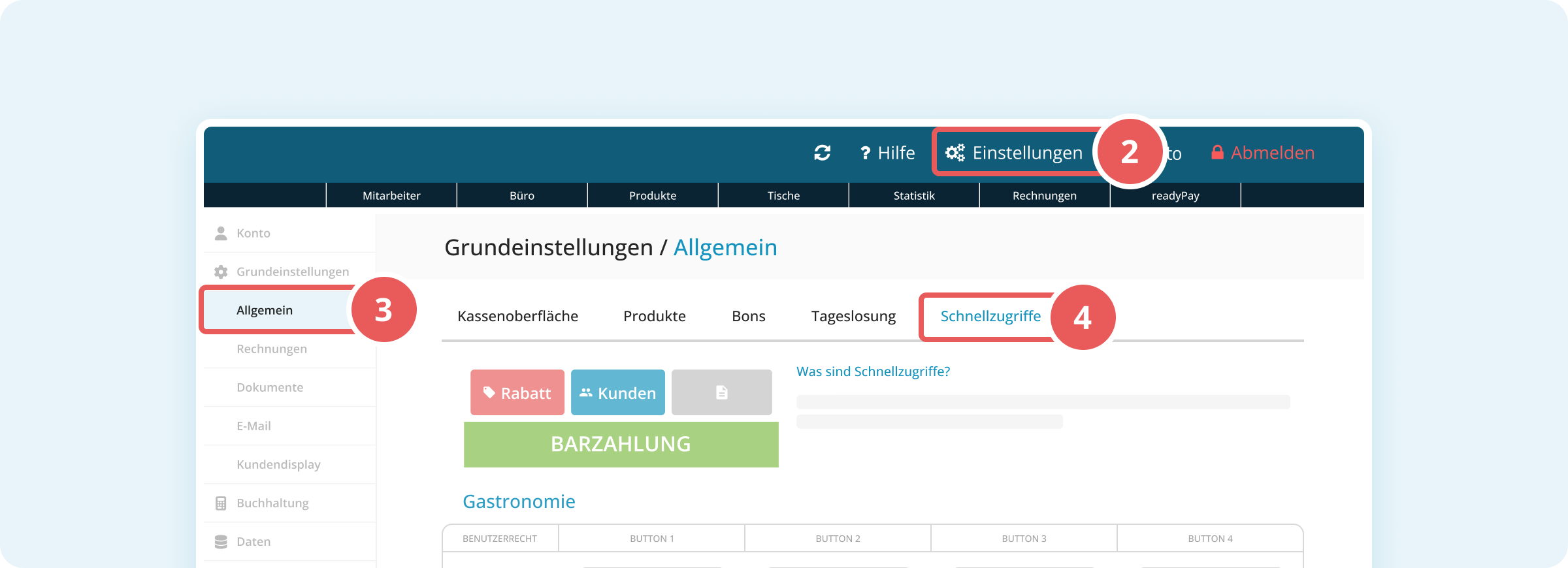 Schnellzugriffe für die Kassenoberfläche einstellen