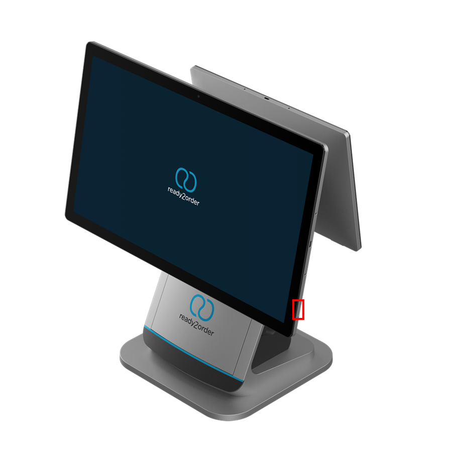 Um Deinen readyMax 2 einzuschalten, halte die Ein-/Ausschalttaste unten rechts am Hauptbildschirm einige Sekunden lang gedrückt.