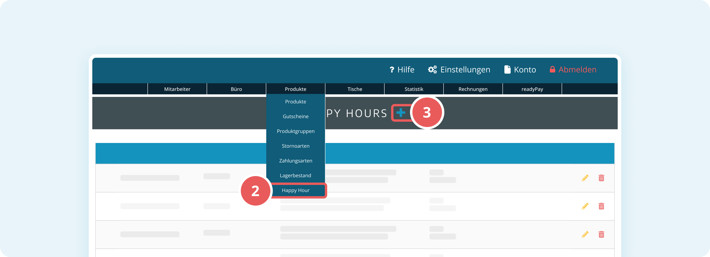 Voraussetzung: Happy Hours erfordern das optionale Gastro-Paket. Außerdem muss die Funktion in der Verwaltungsoberfläche aktiviert werden, bevor Du sie nutzen kannst.
