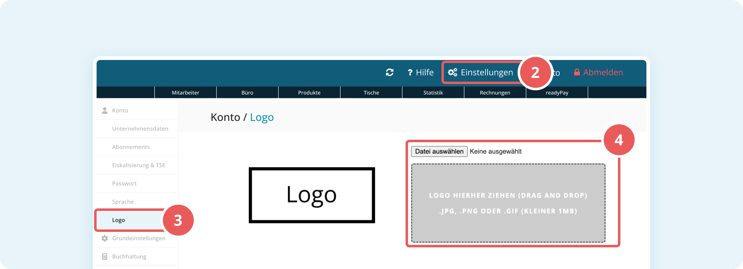 Wie kann ich mein Unternehmenslogo in ready2order verwenden?