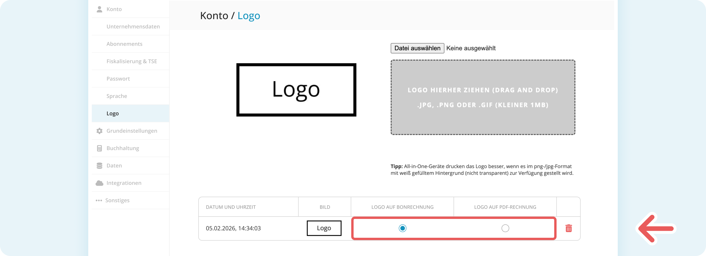 Logo auf Belegen aktivieren