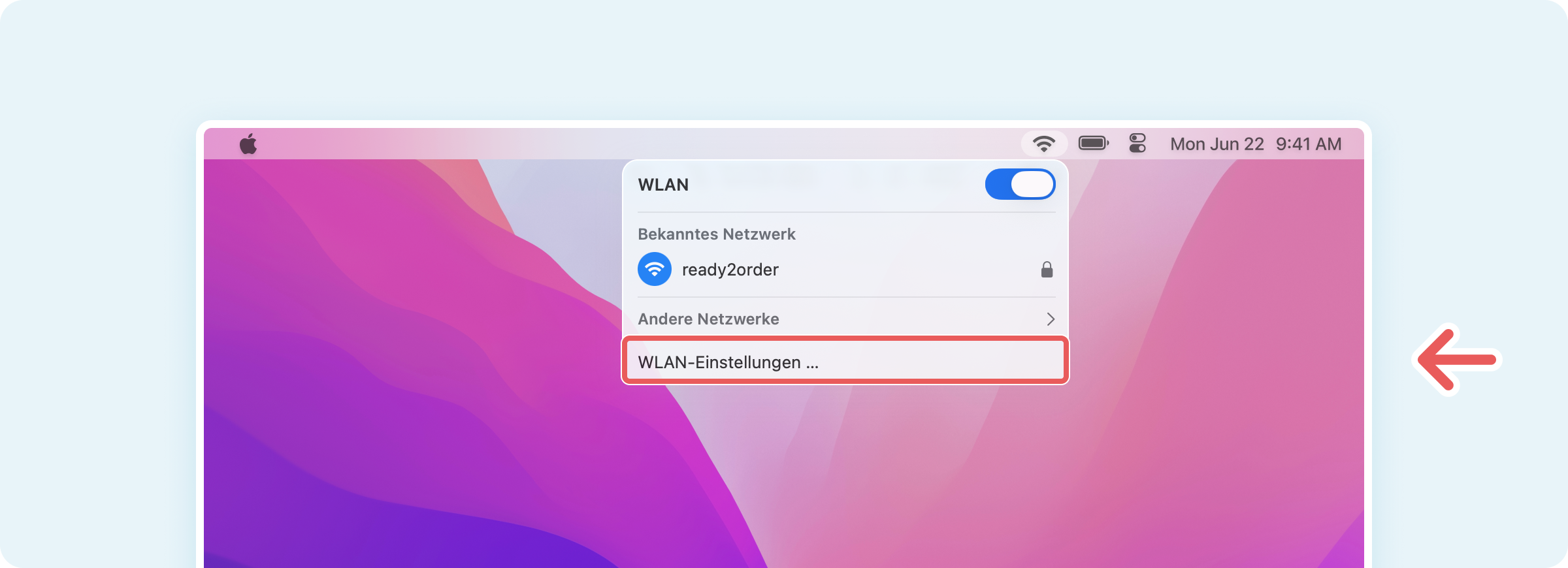 - Klicke oben rechts in der Menüleiste auf das WLAN-Symbol.