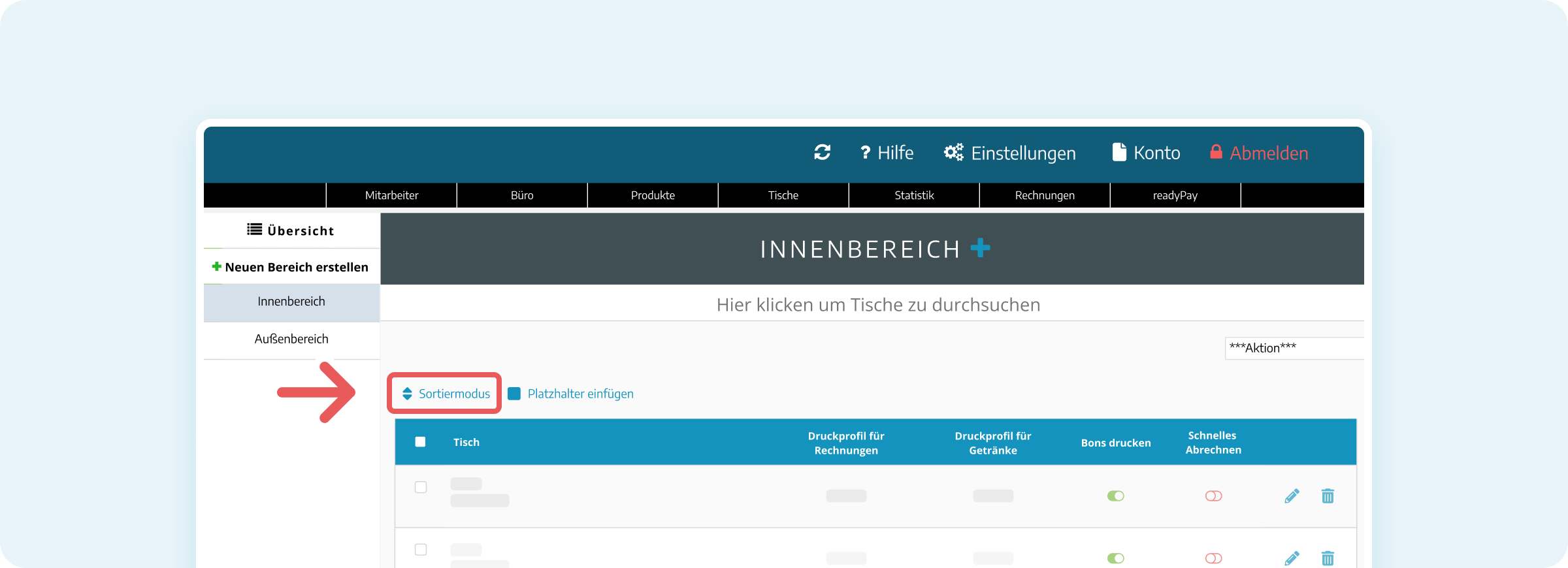 Ein übersichtlicher Tischplan hilft Dir, in der Gastronomie den Überblick zu behalten und Bestellungen schnell den richtigen Tischen zuzuordnen. Mit ready2order kannst Du Deinen Tischplan manuell mit Platzhaltern gestalten – so bildest Du die räumliche Anordnung Deiner Tische in der Kassenoberfläche ab. In dieser Anleitung zeigen wir Dir, wie Du Schritt für Schritt Deinen individuellen Tischplan erstellst.