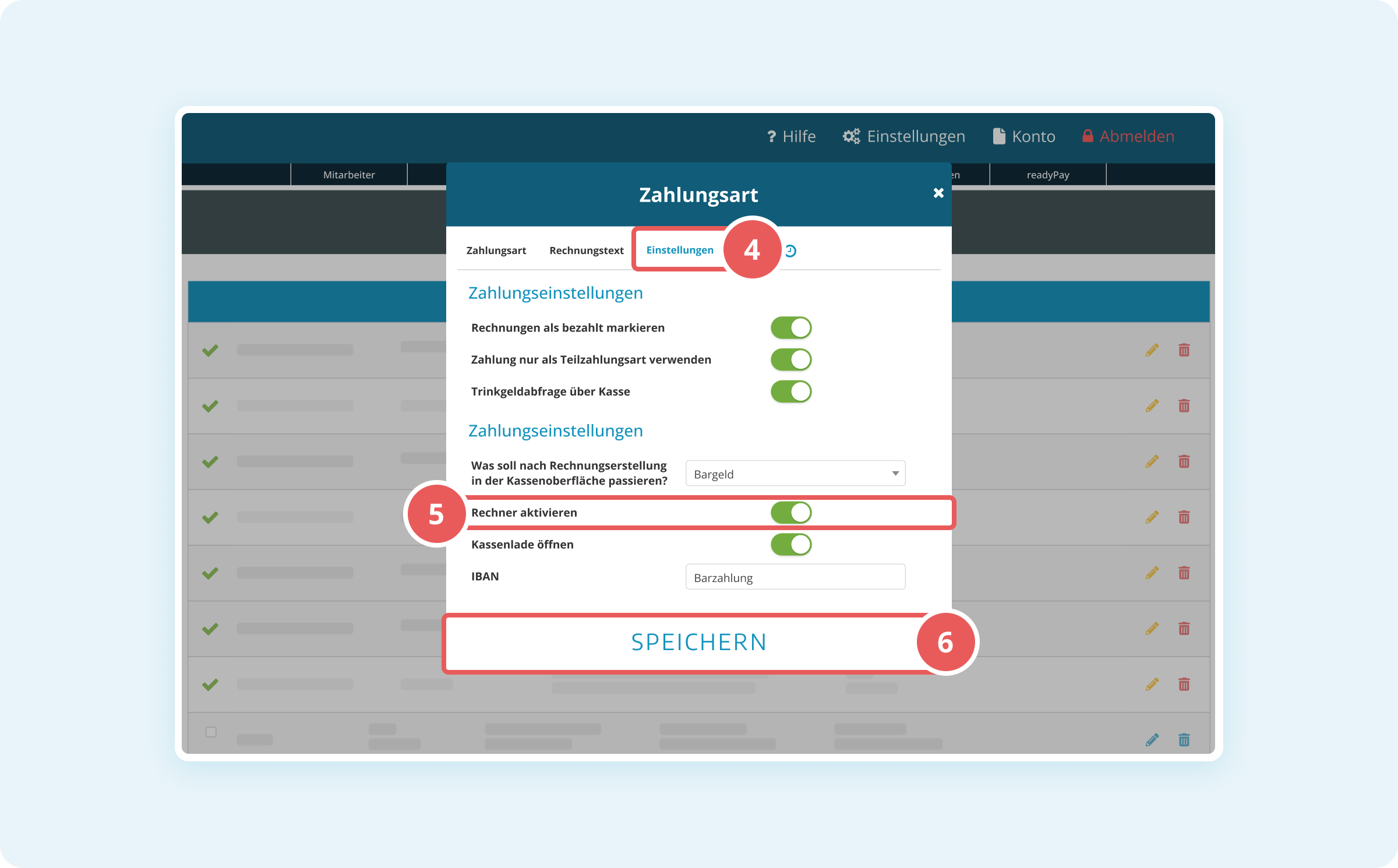 Tipp: Du kannst den Wechselgeldrechner auch für andere Zahlungsarten aktivieren, die Bargeld-Transaktionen ermöglichen.