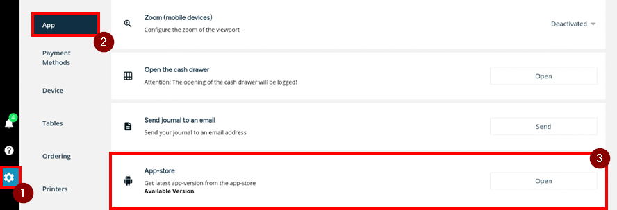 - Under the Android Updater subsection, you can now update your ready2order app, if available. If Open appears there, the app is up to date. If an update is available, select Install and follow the instructions until the update is complete.